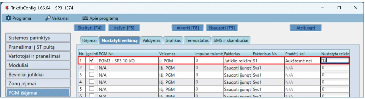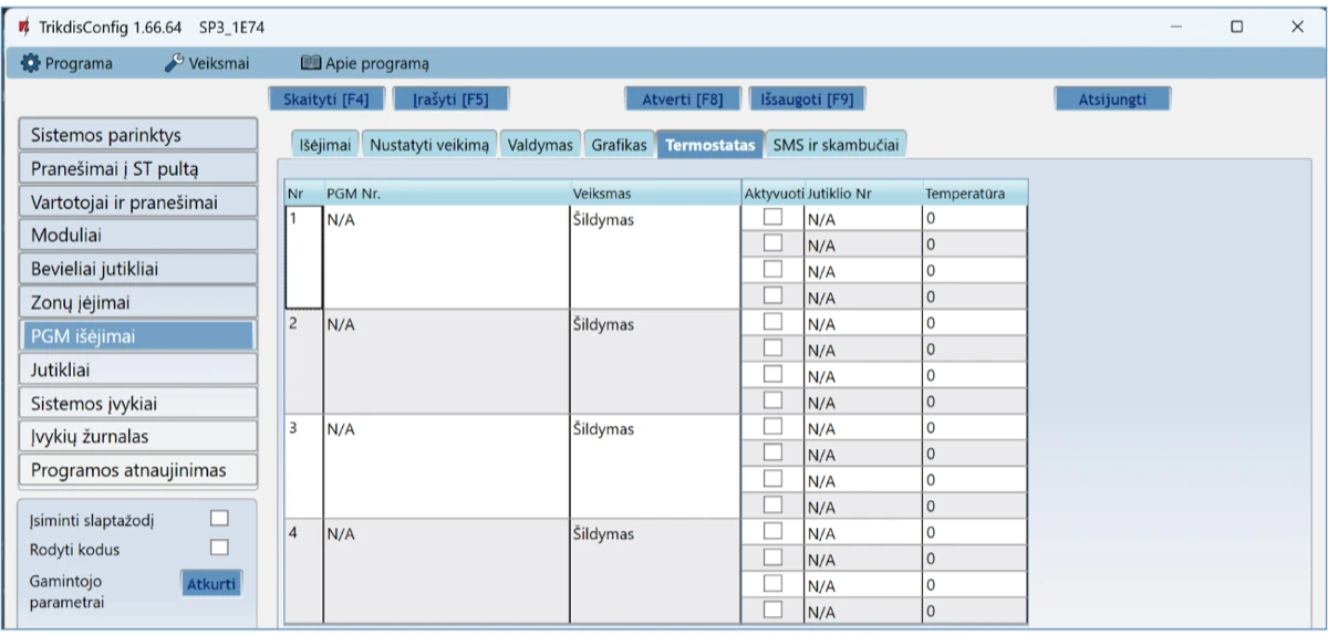 PGM Nr. – nurodykite PGM išėjimo numerį, kurį valdys termostatas.