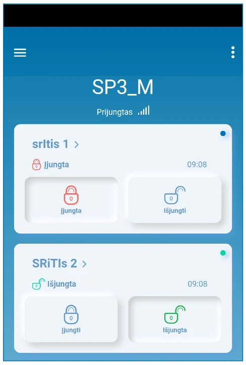 Nuotolinis prijungtų elektros prietaisų valdymas (apšvietimo sistema, vartų varstymo automatika, vėdinimo, šildymo, laistymo sistemos ir kt.).