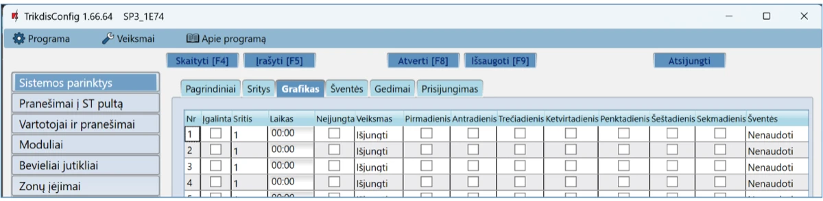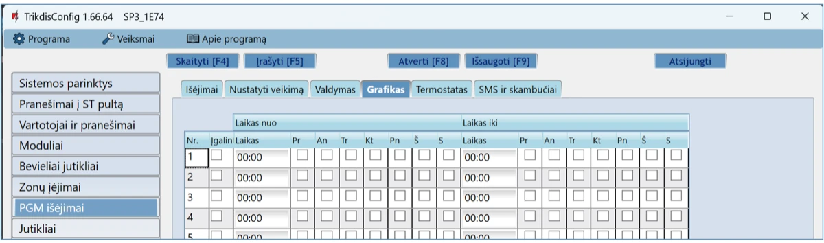 Pr – S – galima pažymėti savaitės dienas, kada PGM turės būti įjungtas/išjungtas.