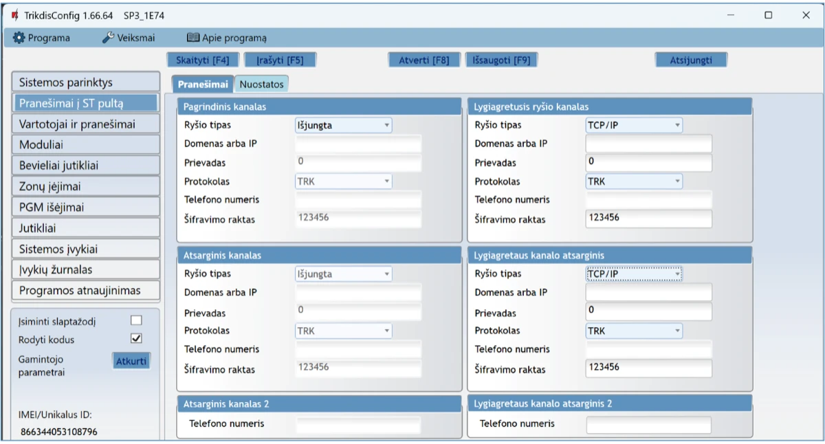 Centrinio stebėjimo pulte pranešimai priimami TRIKDIS IP imtuvu arba SIA DC-09 IP protokolu veikiančiu IP imtuvu.