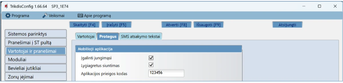 Jei bus naudojamas nuotolinis centralės valdymas, įjunkite bei išjunkite centralės saugojimo režimą nuotoliniu būdu su Protegus2 programėle.