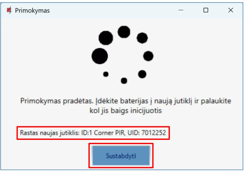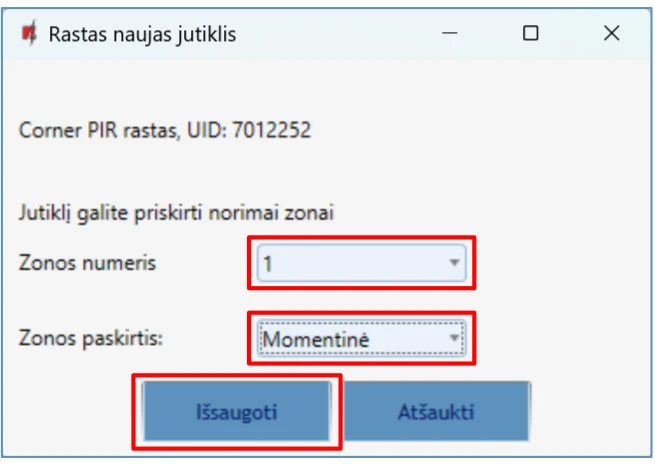 Įrenginys – pasirinktas temperatūros jutiklis bus priskirtas prie eilės numerio.
