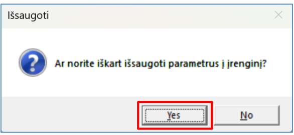 Atliktus nustatymus galima išsaugoti faile ateities panaudojimui.