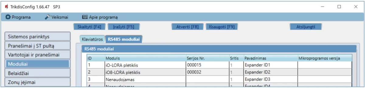 "Modulių" sąraše išsirinkite "iO-LORA plėtiklis" ("iO-8-LORA plėtiklis").