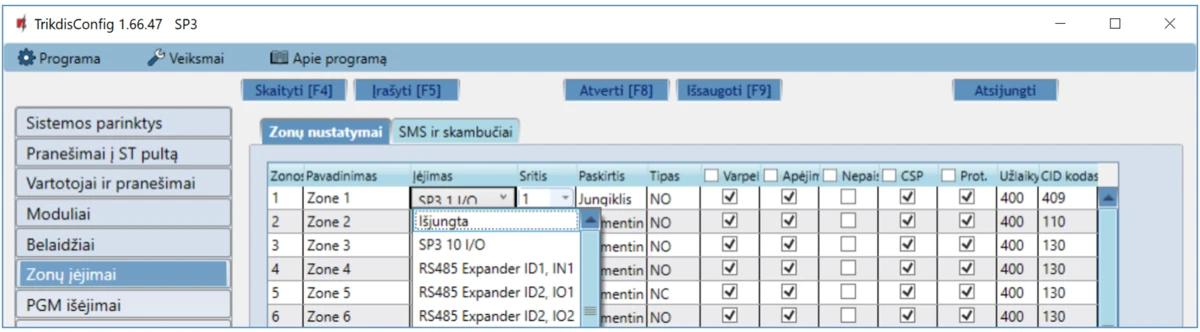 - "Zonų įėjimo" sąraše atlikite nustatymus plėtiklio zonoms.