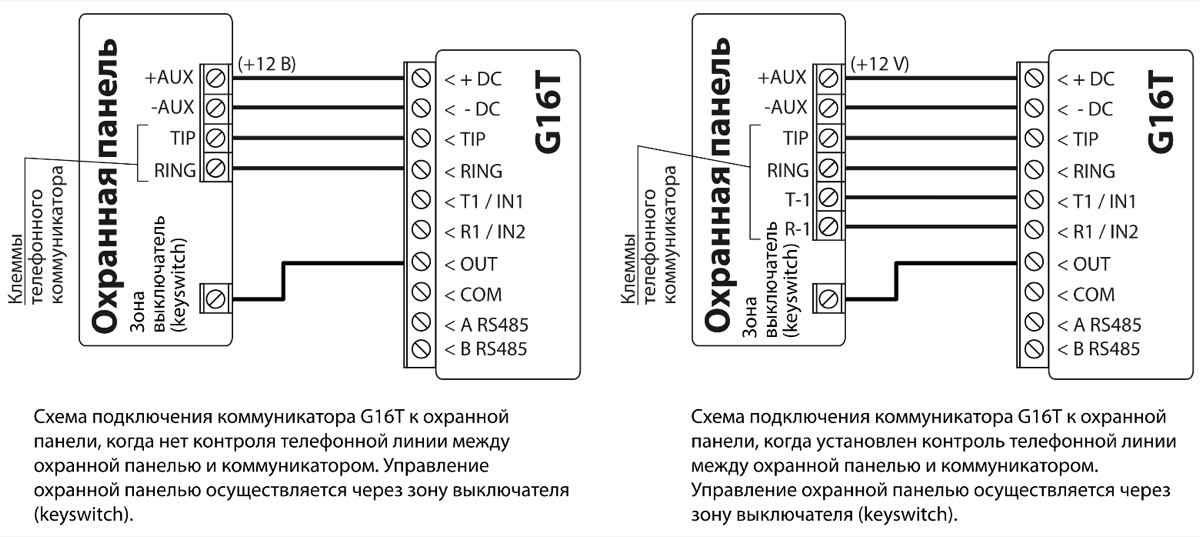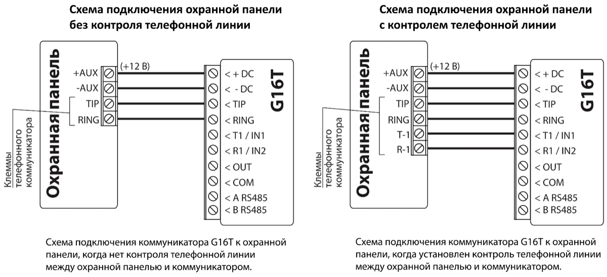 Подключив 4 проводами, будет контролироваться телефонная линия между охранной панелью и коммуникатором.