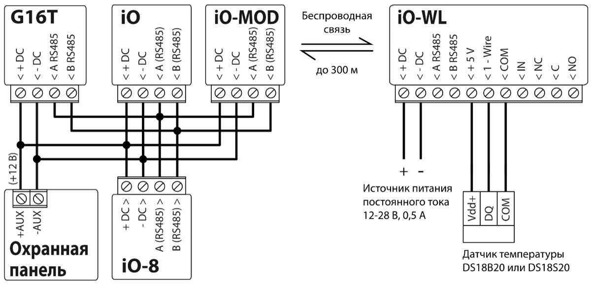 Добавление дополнительных входов и управляемых выходов с помощью беспроводных и проводных iO расширителей.