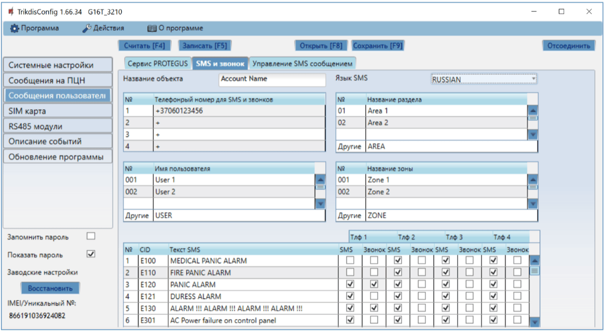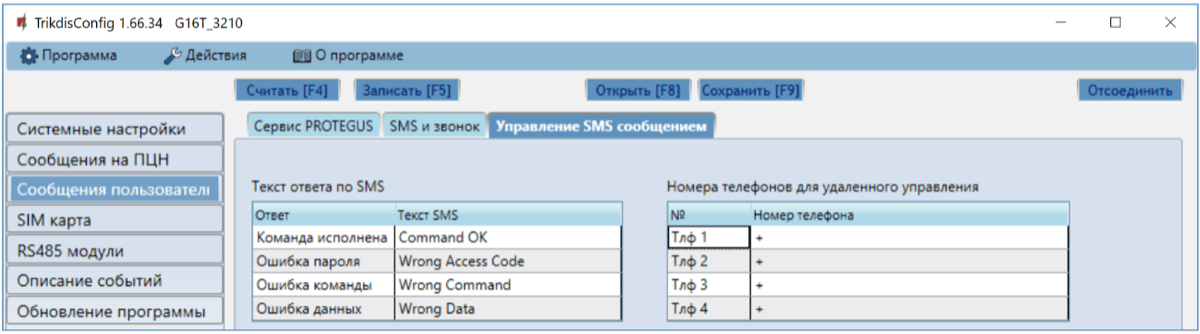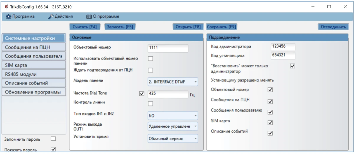 | Конфигурация | С программой TrikdisConfig удаленно или подключив коммуникатор к компьютеру USB Mini-B кабелем. Удаленно SMS сообщениями |