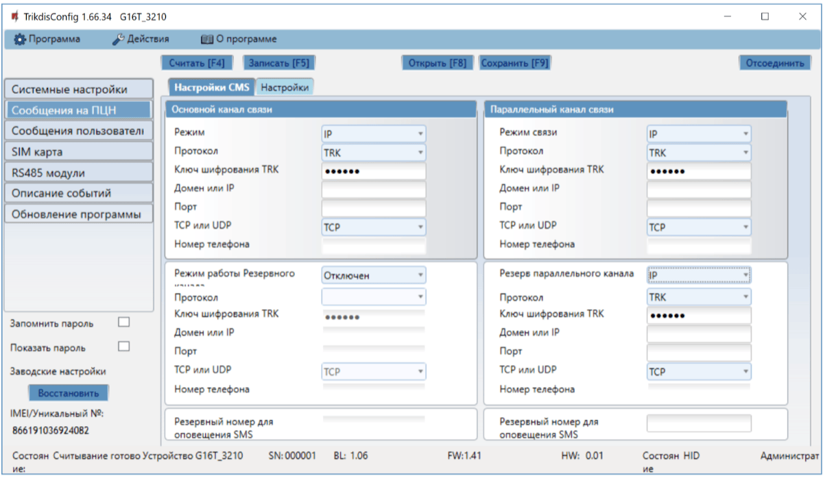 При включении параллельного канала связи, сообщения о событиях будут отправляться на два приемника одновременно.