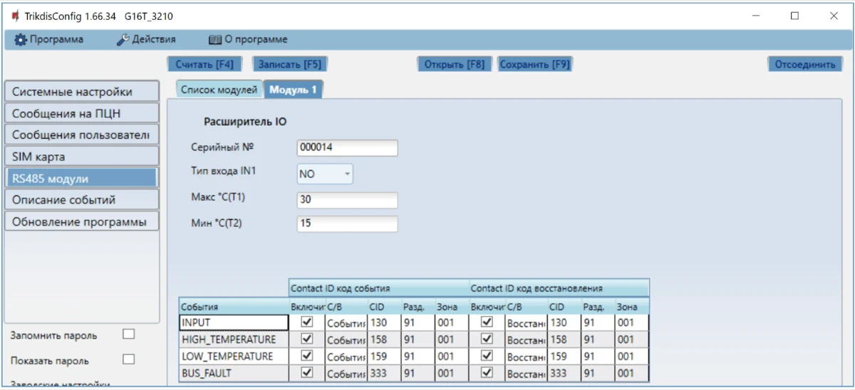 | T-1 / IN1 | Клемма для наблюдения за телефонной линией или клемма входа, тип: NC; NO; NC/EOL; NO/EOL; NC/DEOL; NO/DEOL |