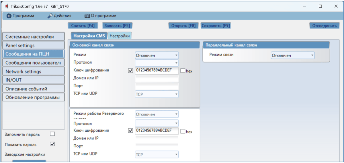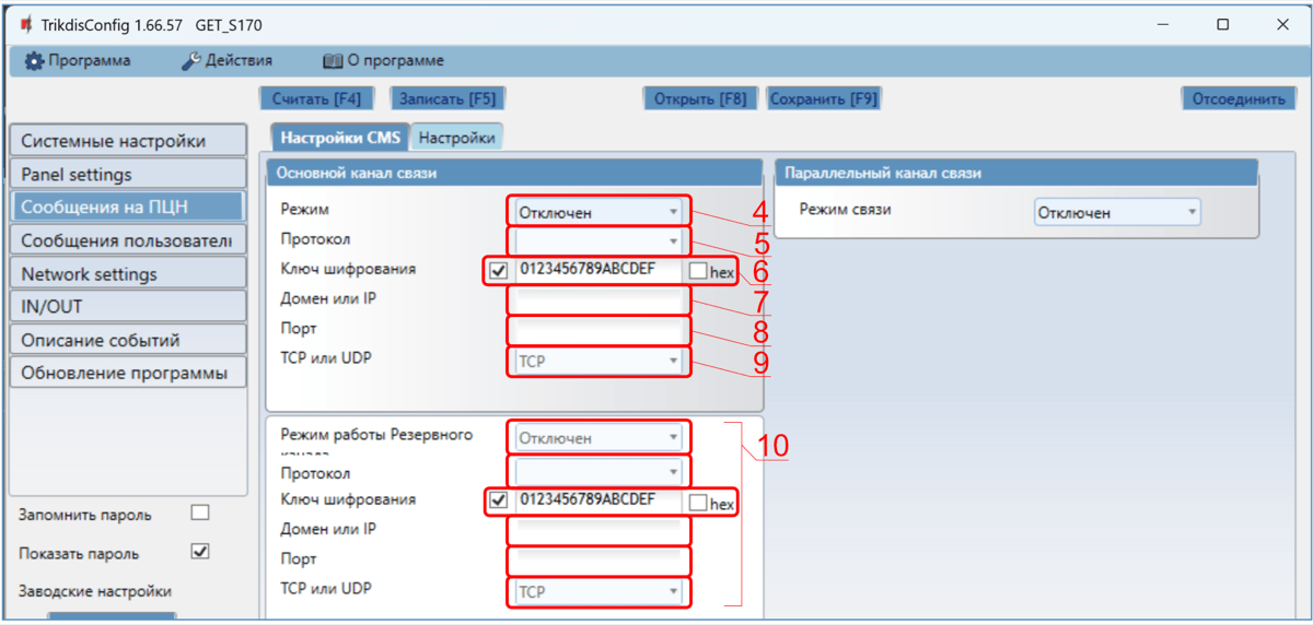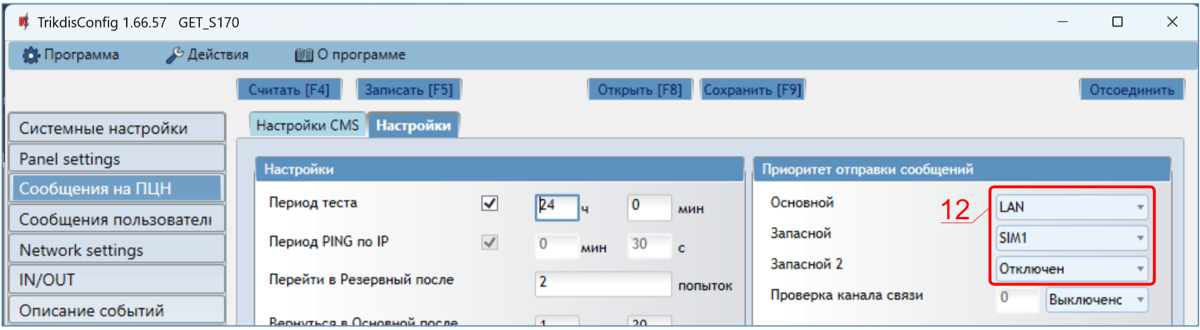 При включении параллельного канала связи, сообщения о событиях будут отправляться на два приемника одновременно.