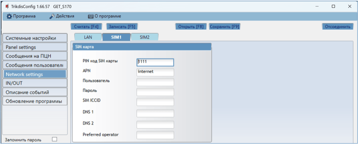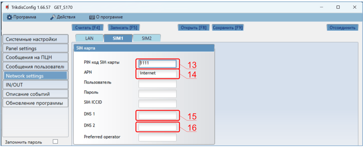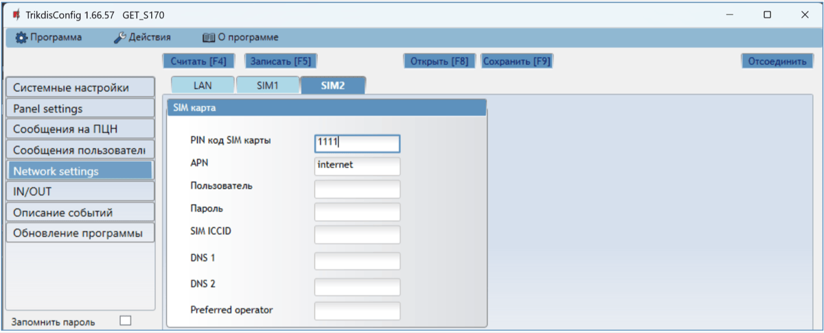 | NETWORK LTE | Выключен | Нет подключения с GSM сетью. |