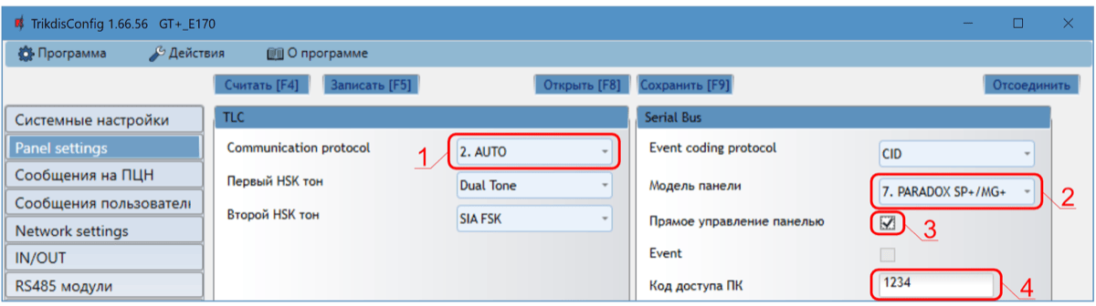*Подчеркнуто – охранные панели, которые напрямую управляются GET. Прошивка PARADOX охранных панелей, которые напрямую управляются, должна быть не ниже V.4.