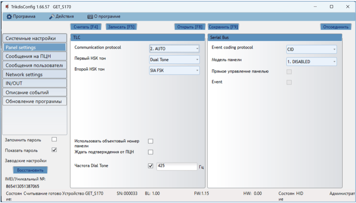 | Конфигурация | С программой TrikdisConfig удаленно или подключив коммуникатор к компьютеру USB-C кабелем |