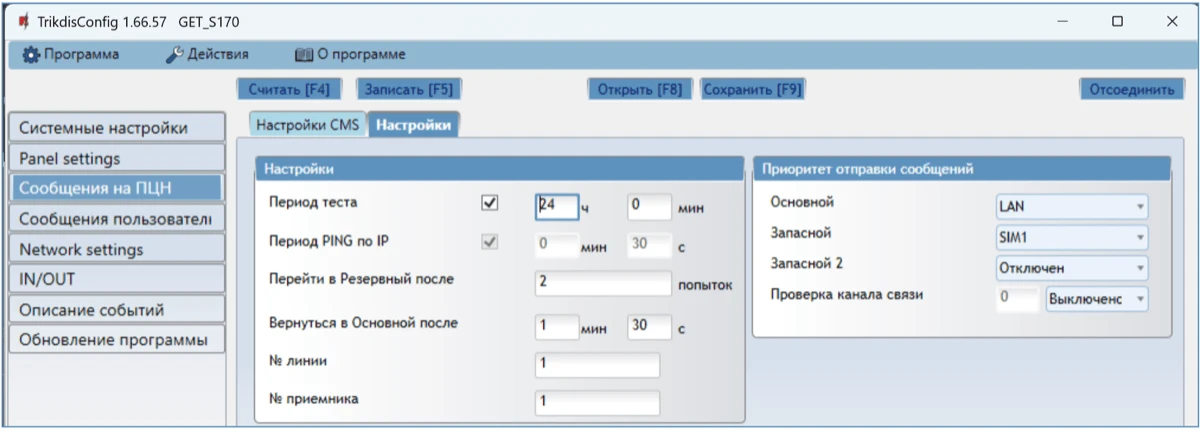 Отправляет сообщения на приемник ПЦН: