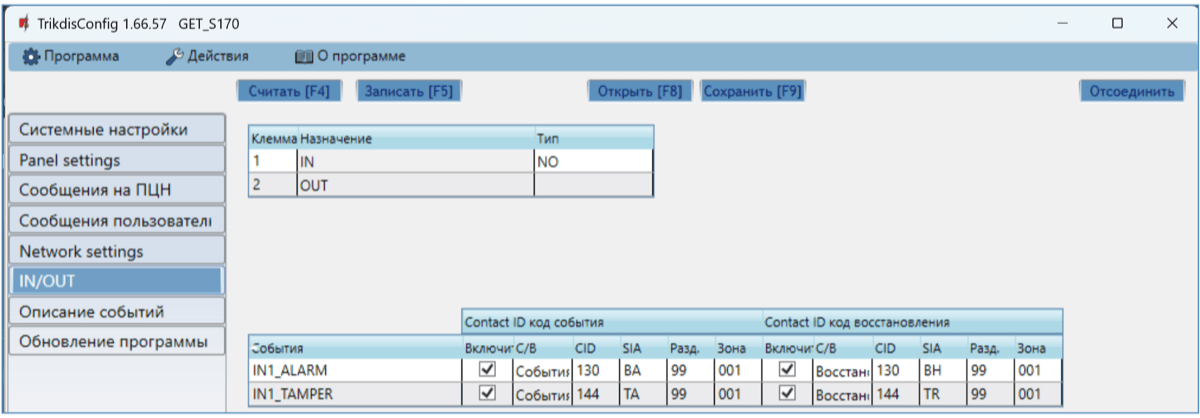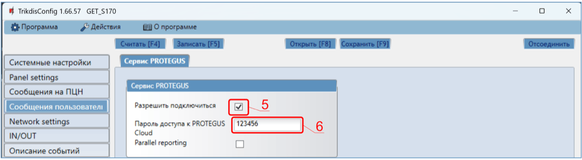 Выходы управляются приложением Protegus2.