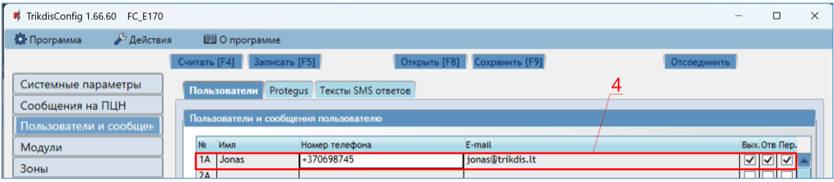 Прот. – отметьте поле и в приложение Protegus2 будет отправлено сообщение об изменениях состояния выхода.