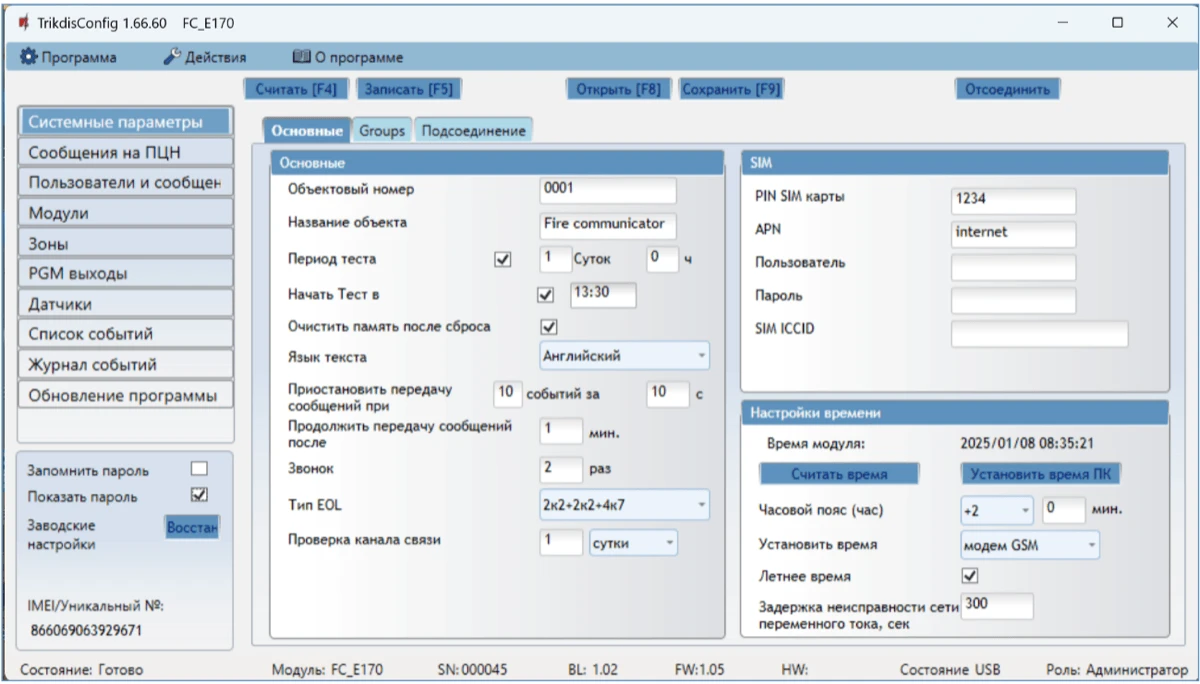Настройка осуществляется программой TrikdisConfig, подключив коммуникатор к компьютеру кабелем USB Type-C или удаленно.