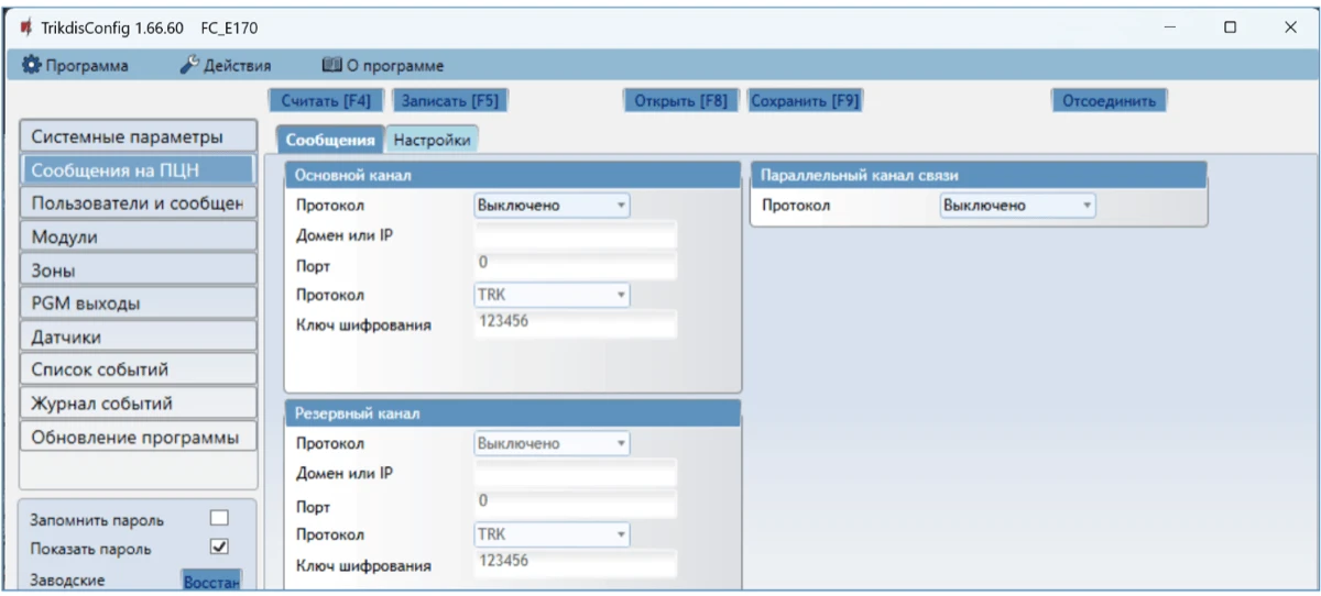 ПЦН – отметьте поле и сообщения будут отправляться на ПЦН (пульт централизованного наблюдения).