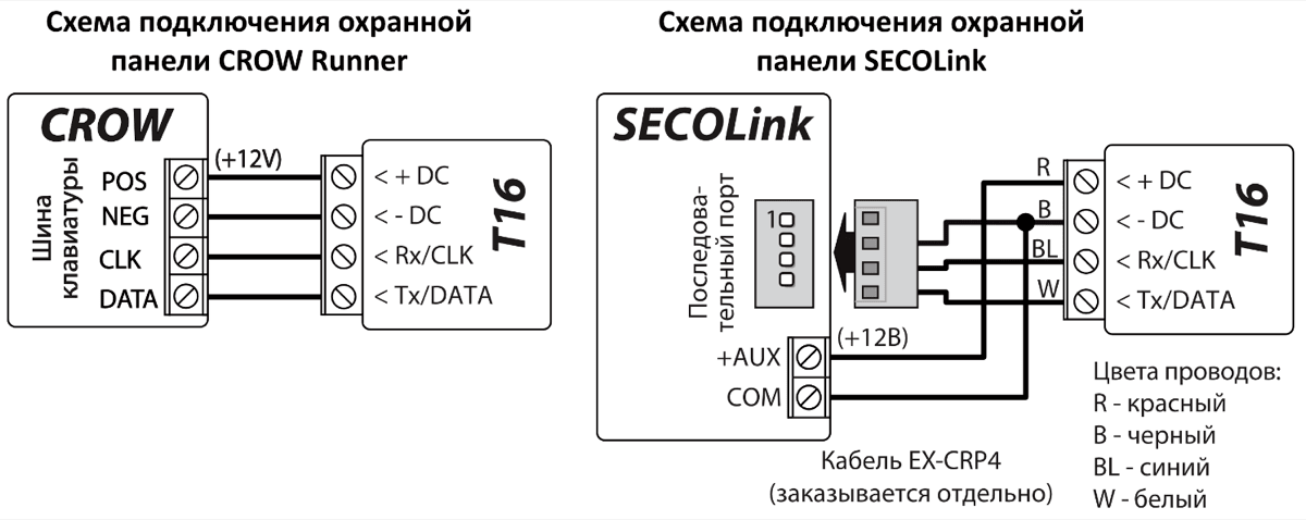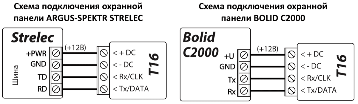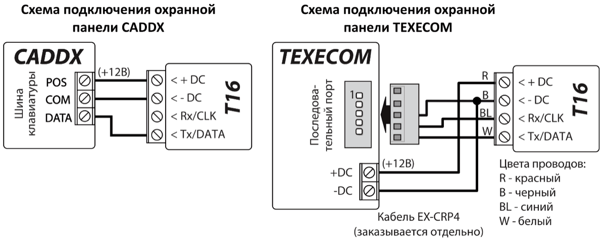 | Tx/DATA | DATA клемма последовательного порта охранной панели |