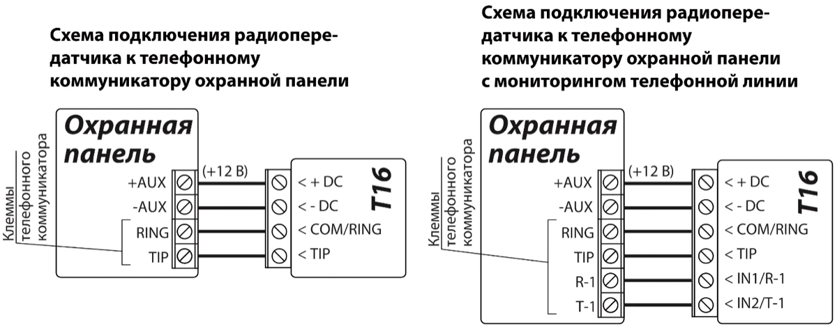 TIP/RING шина телефонного коммуникатора, которая может принять сообщения от охранной панели Contact ID и 4+2 кодами.