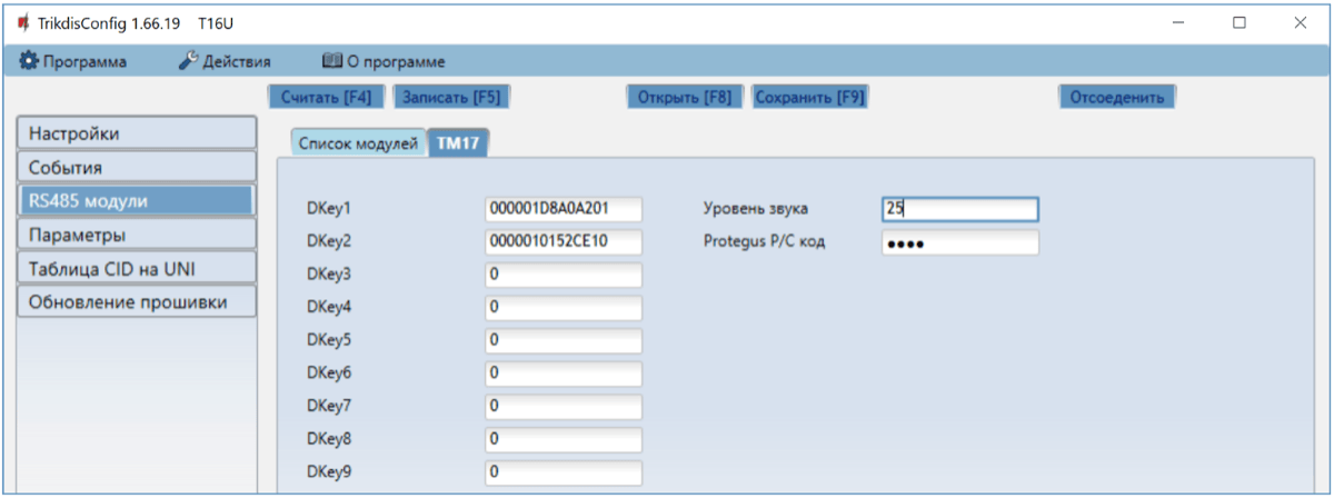 Dkey 1 – Dkey 9 – в поле записываются идентификационные номера электронных ключей (iButton).