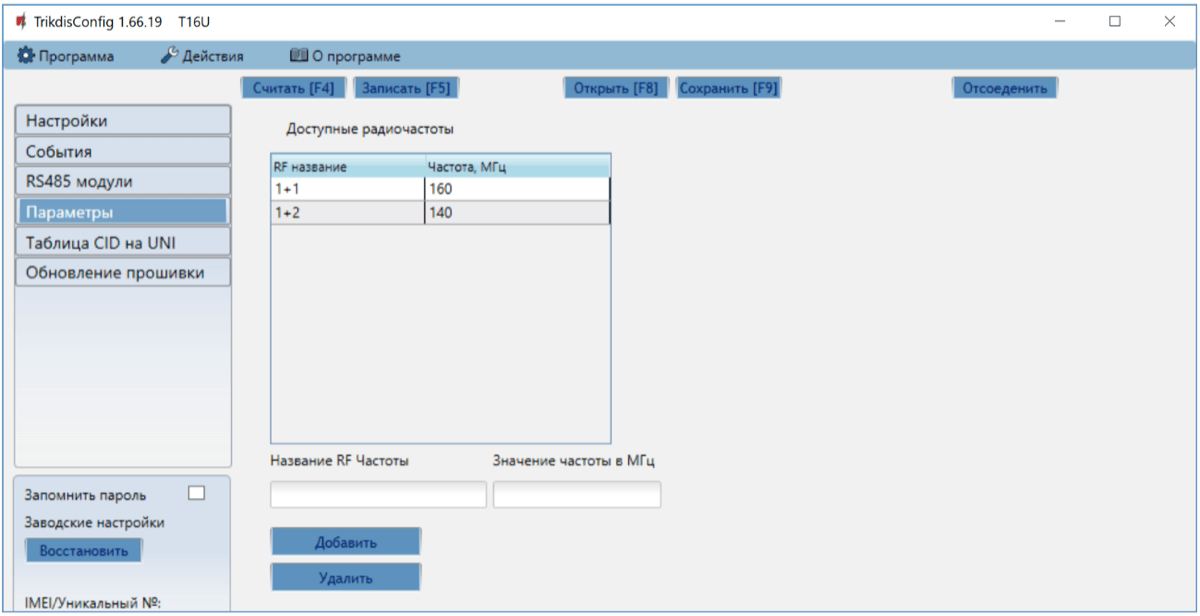 К списку можно Добавить/Удалить радиочастоты, на которых будет работать радиопередатчик Т16. Радиочастотам присваиваются „Названия“.
