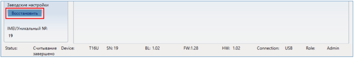 Для восстановления заводских настроек необходимо в программном окне TrikdisConfig нажать кнопку Восстановить.