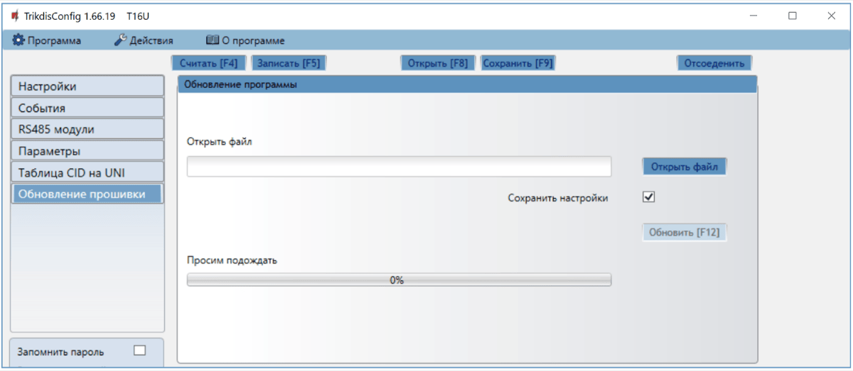 В программе TrikdisConfig откройте окно Обновление программы.