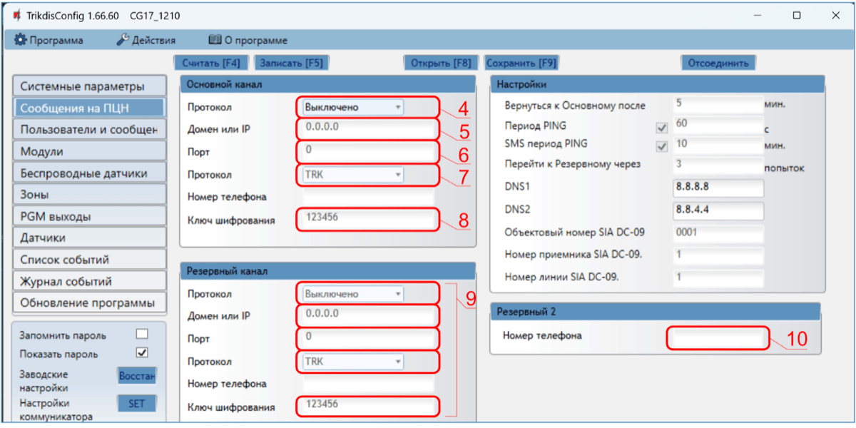 Отправлять отчеты о событиях на приемник ПЦН (пульт централизованного наблюдения).