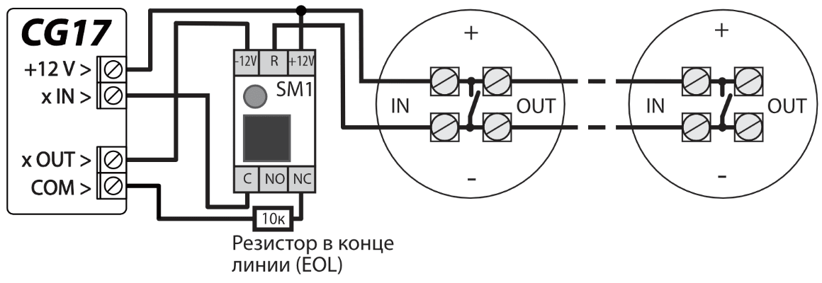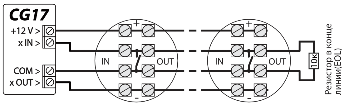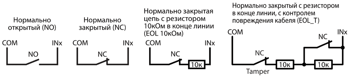 | Входы [IN] | 1 шт., тип: NC, NO, EOL=10 kΩ или EOL_T |