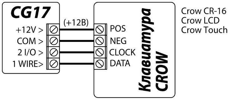 | Поддерживаемая клавиатура | Crow CR-16, Crow LCD, Crow touch keypad |