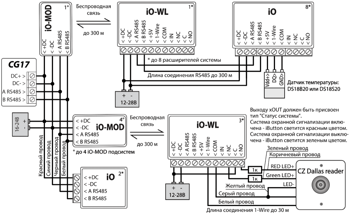 | Длина „1-Wire“ шины [1 WIRE] | До 30 м |
