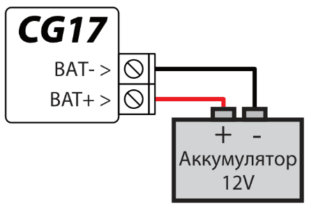 Подключение резервного источника питания (аккумулятора 12 В) и его зарядка.