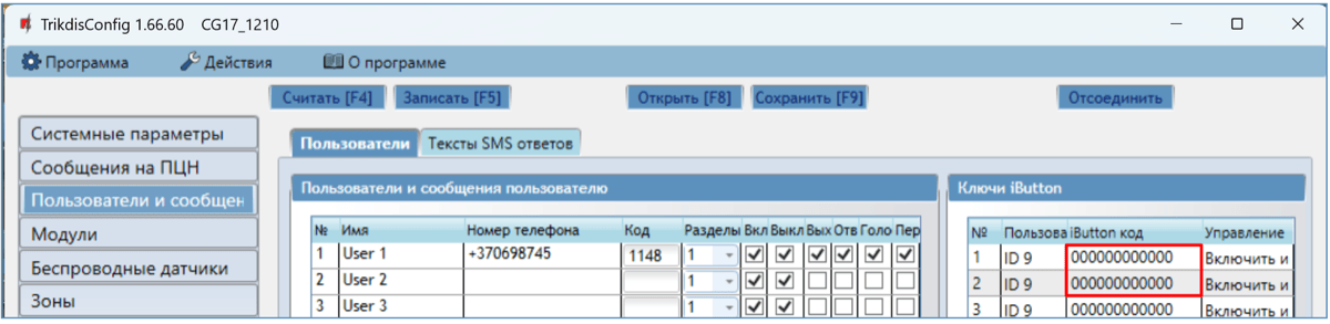 Применяя считыватель контактных ключей (iButton).