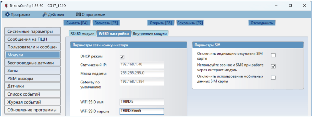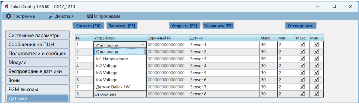 6.5 Управление через TrikdisConfig¶