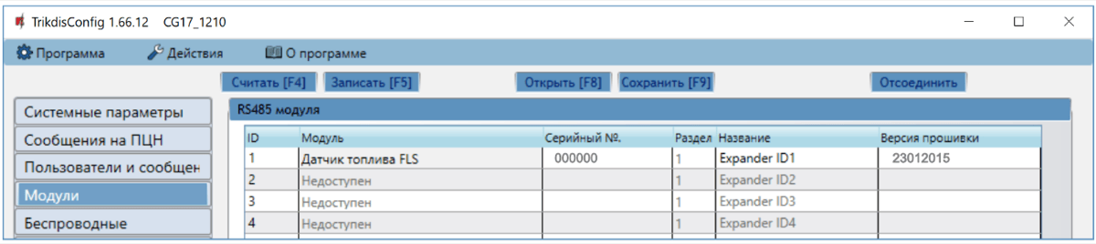 | Количество подключаемых модулей к шине RS485 | 8 шт. |