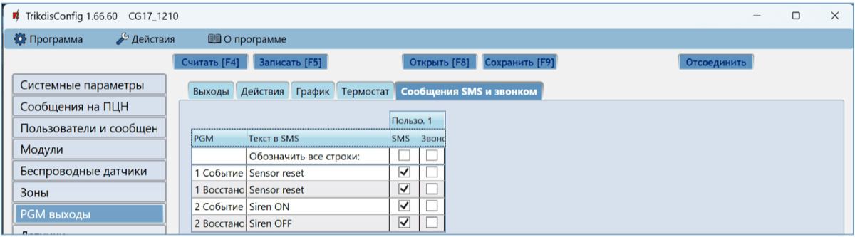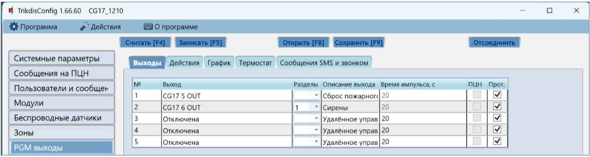 Проверьте работу выходов CG17. Активируйте их удаленно и убедитесь, что пользователи получают сообщения о событиях, а выходы срабатывают.