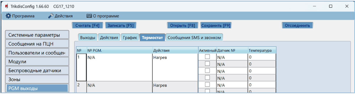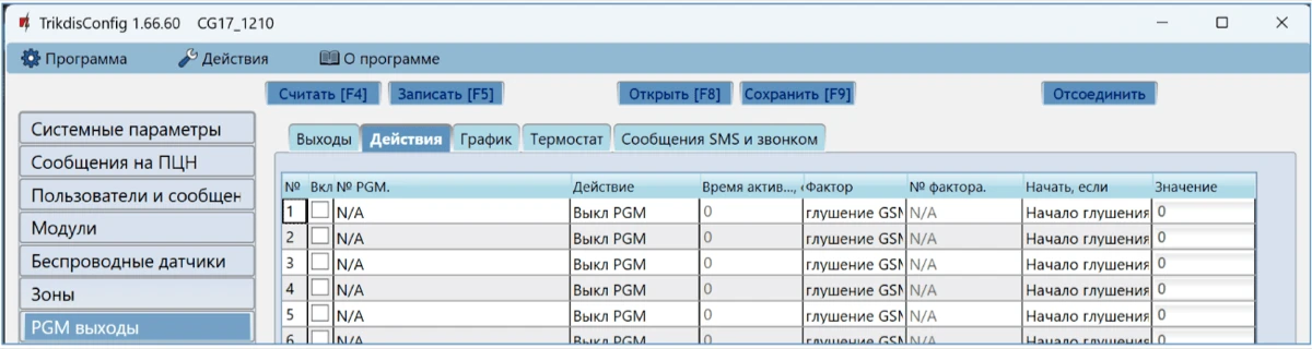 Сделайте необходимые настройки для CG17. Запишите эти изменения в CG17, нажав на кнопку Записать [F5]. Нажмите кнопку „Отсоединить“ и выйдите из программы TrikdisConfig.