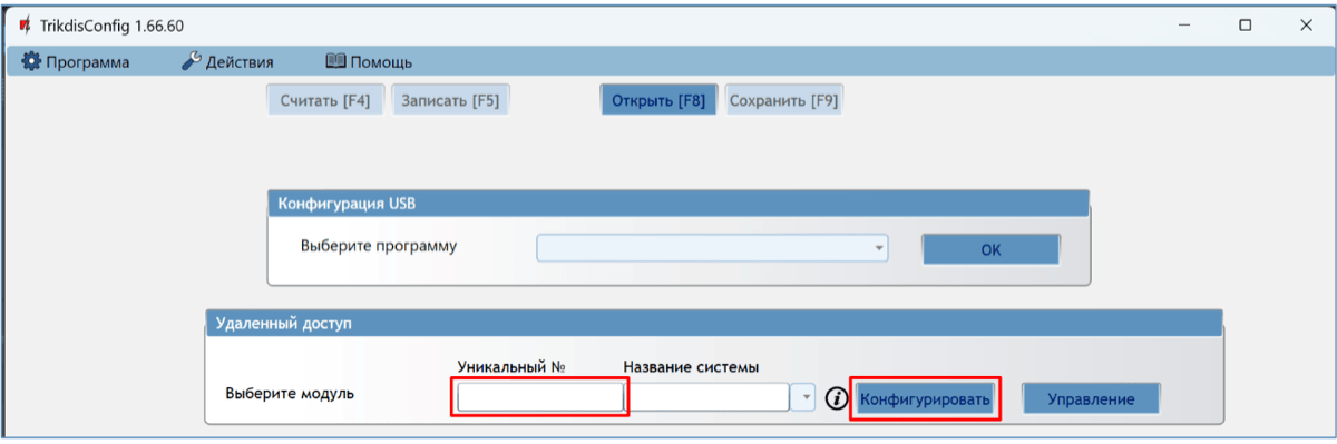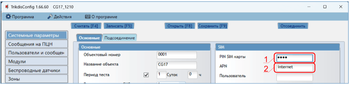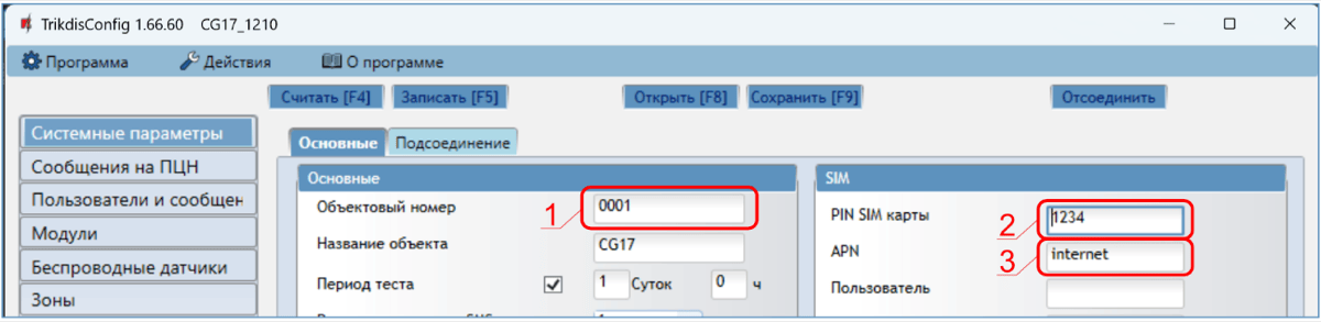 Запустите программу TrikdisConfig. В поле „Уникальный №“ введите IMEI номер CG17, который указан на упаковке или на изделии.