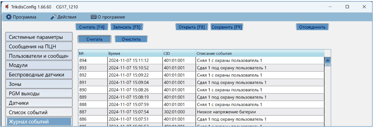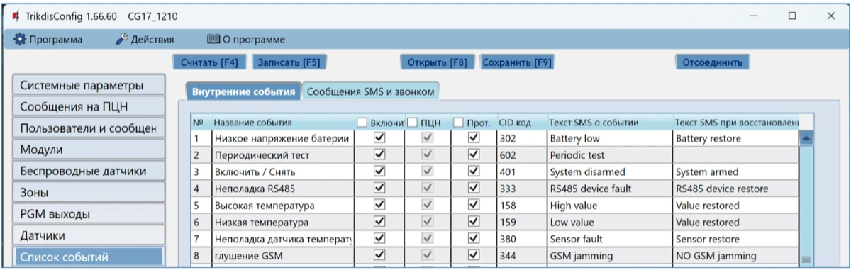 Проверьте систему охранной сигнализации, чтобы убедиться, что ПЦН получает сообщения по событиях.