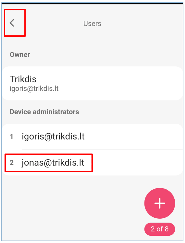 | x | Номер пользователя в списке (записав 1 уступите права администратора другому лицу). |