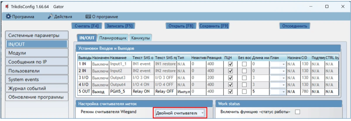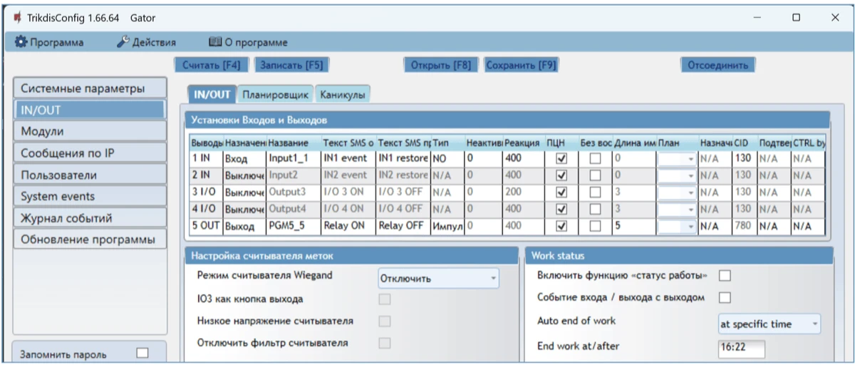 Выходы (OUT) могут управляться пользователем в соответствии с установленным графиком (расписанием). Расписание должно быть назначено пользователю.