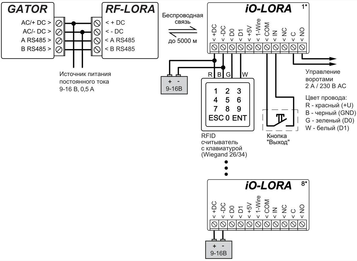 Дополнительные входы и выходы можно добавить с помощью расширителя iO8 или iO8-LORA. К контроллеру GATOR можно добавить один модуль расширения iO8 или iO8-LORA.