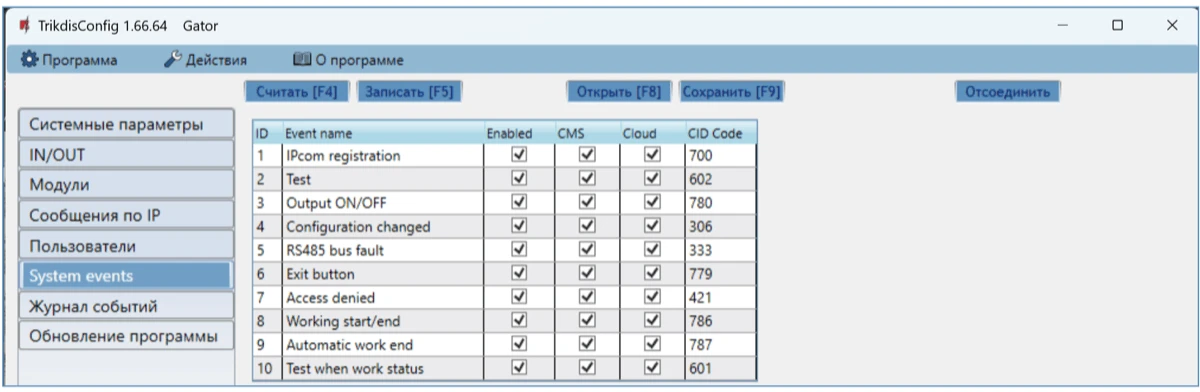 Настройка отправки событий контроллера на ПЦН и в приложение Protegus2.