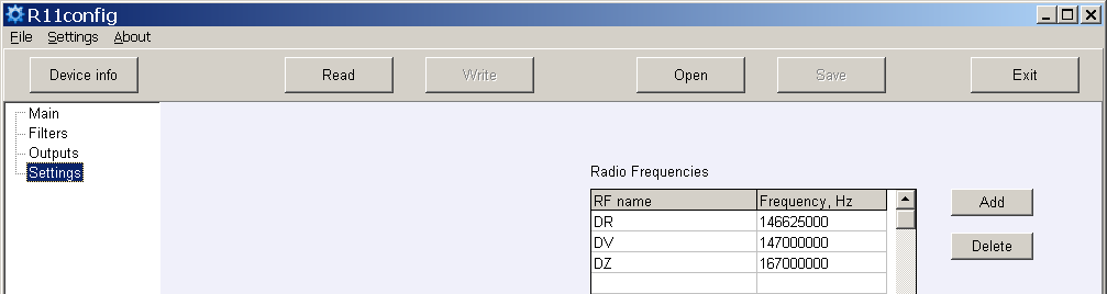 Новые частоты можно добавить или удалить существующие в разделе программы Settings.